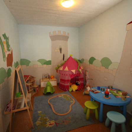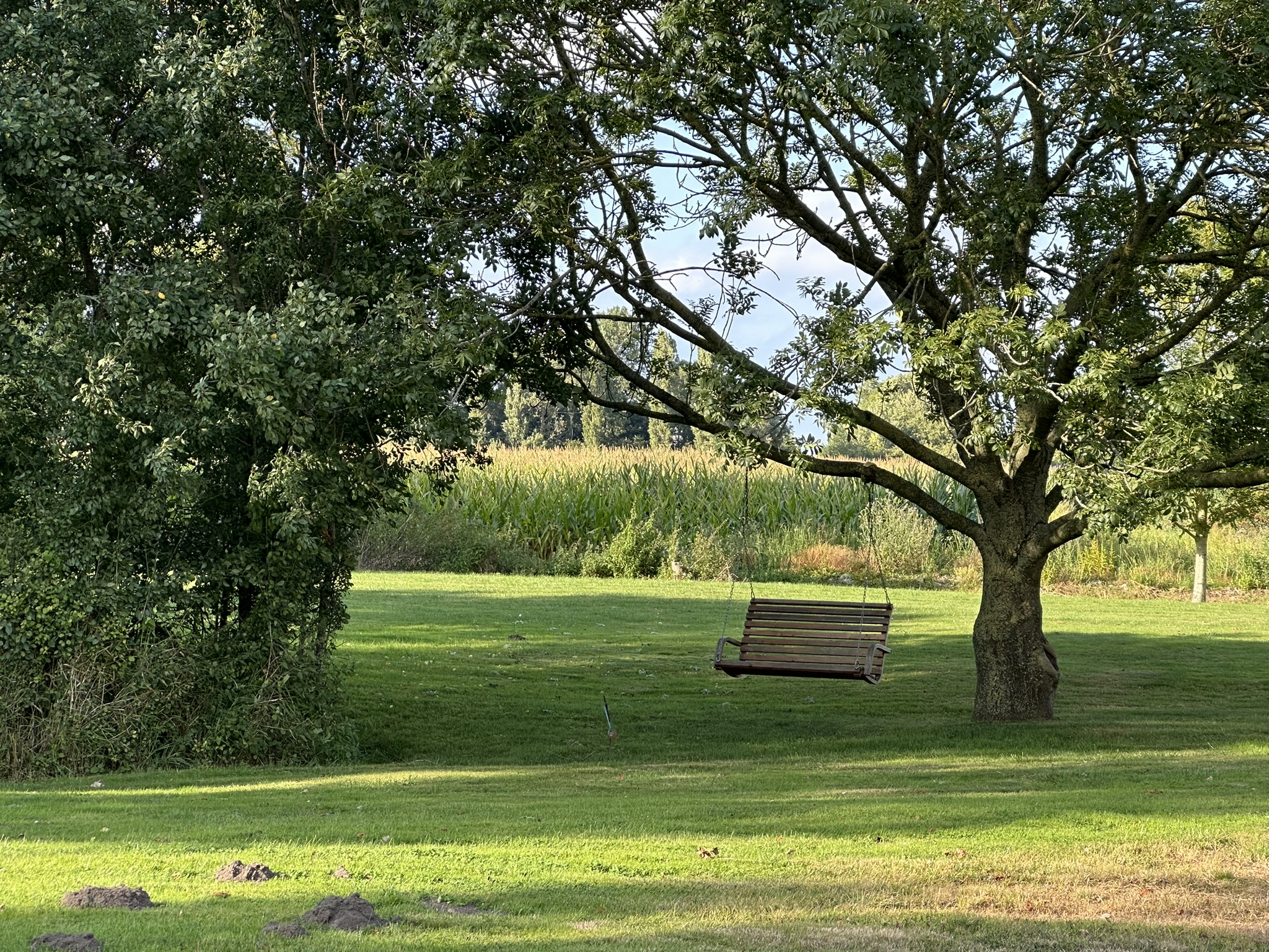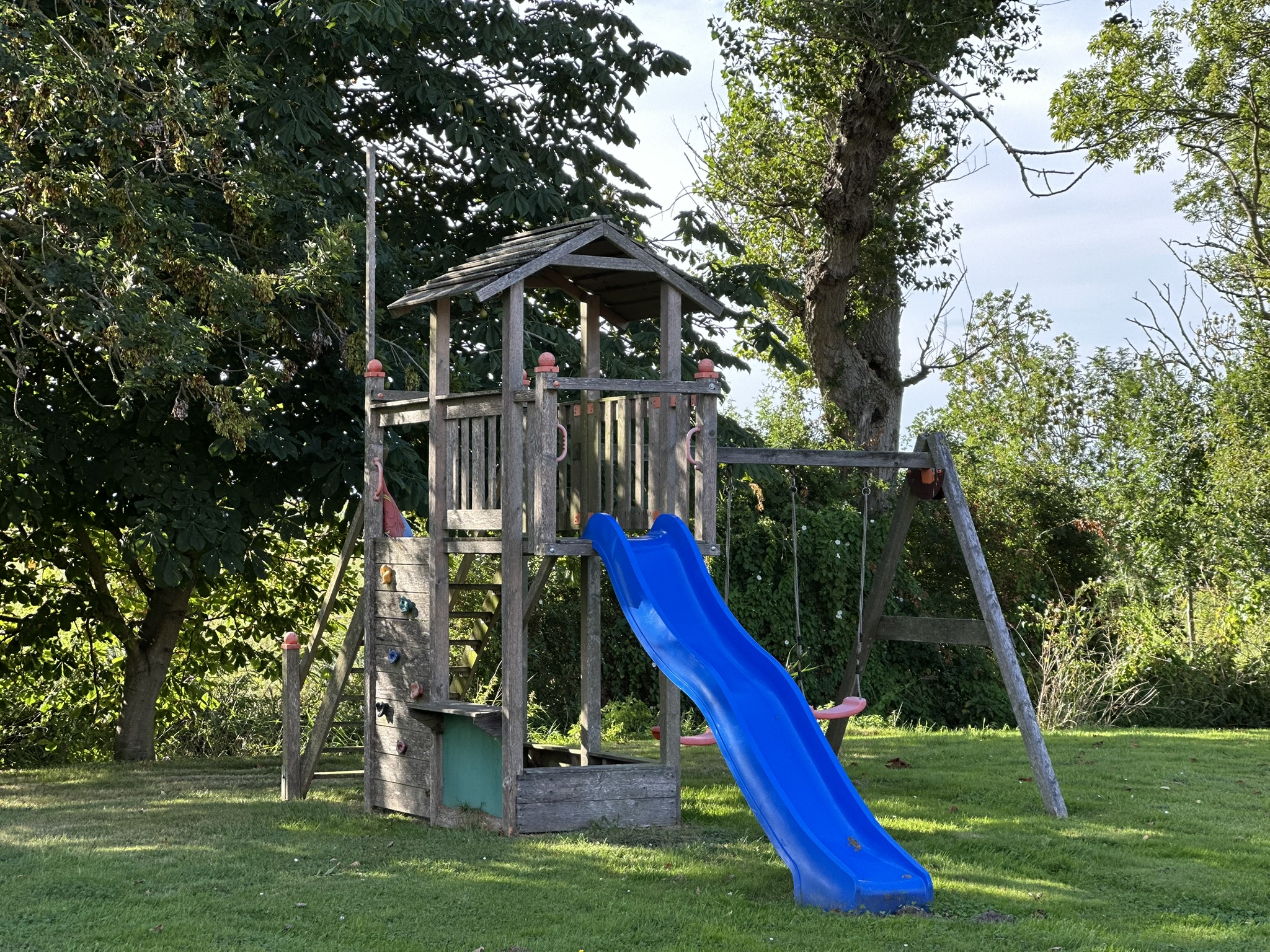 Hinterm Haus befindet sich ein Spielplatz mit einem Kletterturm und einer Schaukel. Ebenso haben wir für unsere kleinen Gäste einen Sandkasten. Die große Wiese lädt die größeren zum Fussballspiel ein.