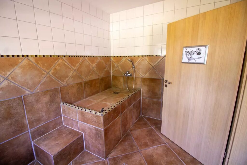 Bei uns müssen nicht nur Zweibeiner frisch bleiben – auch die Vierbeiner kommen unter die Brause. Unsere Hundedusche im Haus sorgt dafür, dass Sandpfoten, Matschabenteuer und Watttouren keine Spuren im Urlaub hinterlassen. Sauber, praktisch und mit Wau-Effekt!“